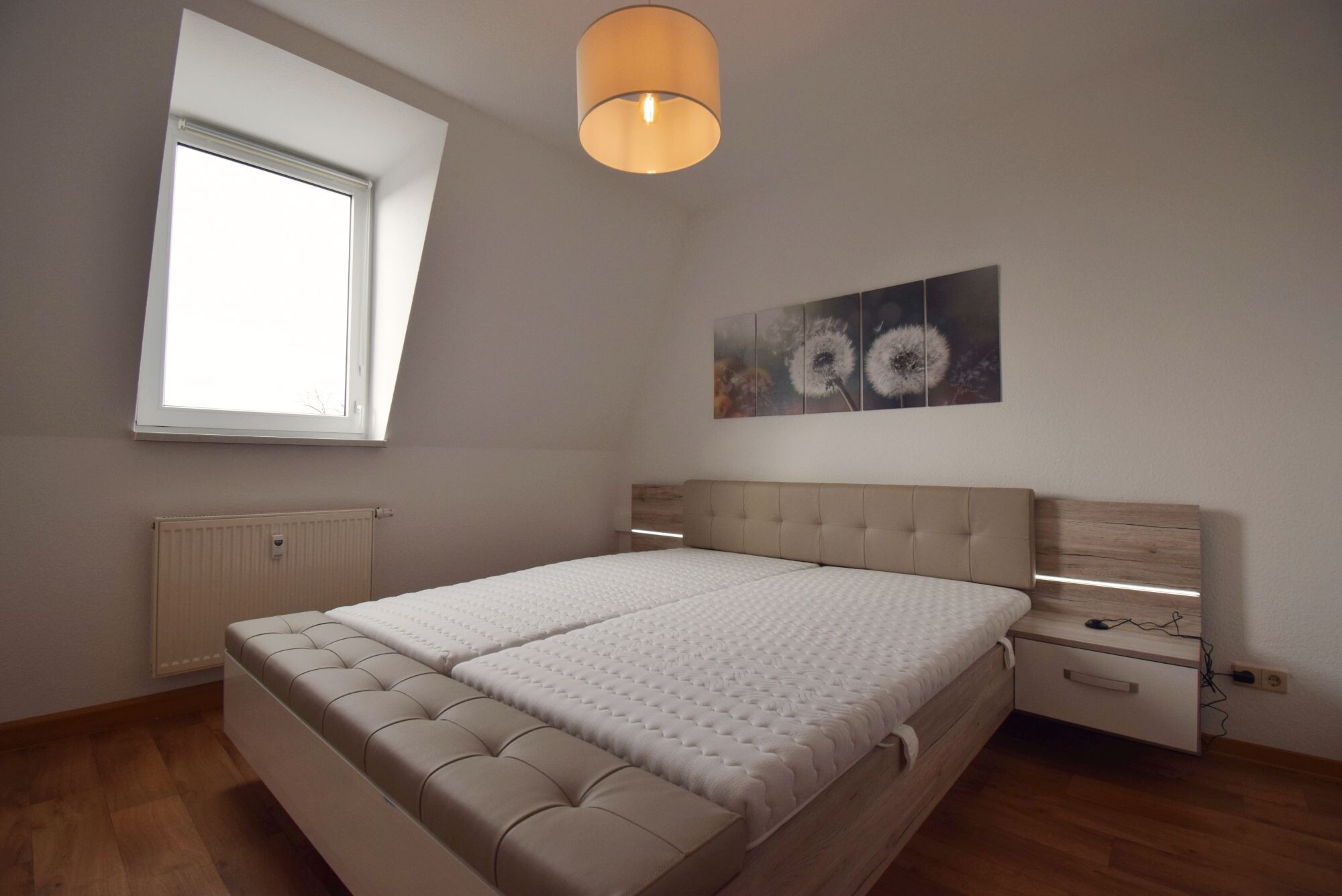 Die neu eingerichtete Wohnung befindet sich im Dachgeschoss eines Altbaus im Stadtzentrum von Riesa und ist direkt über einen Aufzug erreichbar. Die 2-Raum-Wohnung mit 58 m² Wohnfläche kann auch mit Kindern bezogen werden, da im Wohnzimmer eine bequeme Schlafcouch zur Verfügung steht.