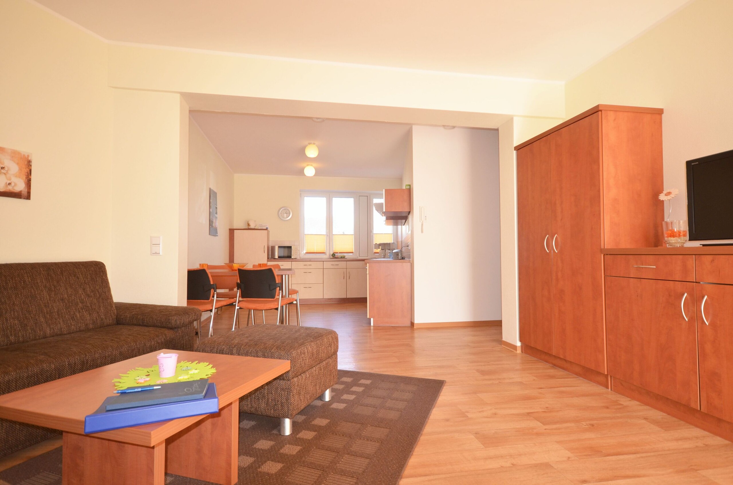 Gästewohnung mit Wohlfühlgarantie - bis zu drei Personen können in dieser 1-Raum-Wohnung mit Terrasse und Blick in den begrünten Innenhof übernachten. Direkt im Stadtzentrum, in der Pestalozzistr. 7a gelegen, bietet sie den perfekten Ausgangspunkt für eine ausgiebige Stadtbesichtigung. Die Wohnung ist durch die Lage im Erdgeschoss sehr bequem zu erreichen.