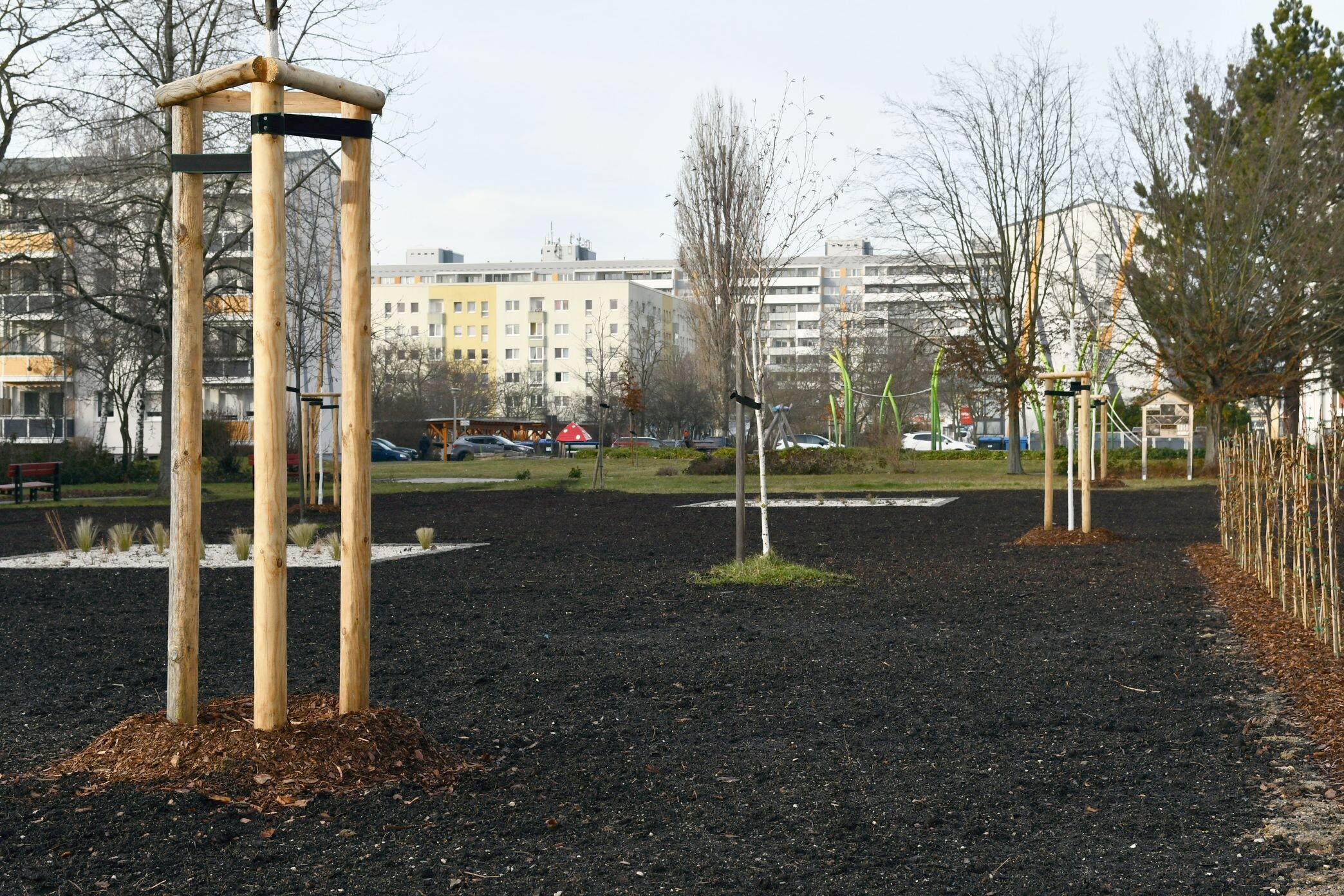 Die neue Spiellandschaft wird nicht nur bunter, spannender und vielseitiger, sondern auch generationsübergreifend nutzbar sein. Besonders wichtig war uns, dass die Wünsche der Kinder nach Klettermöglichkeiten, Chillecken und kleinen Naschmöglichkeiten berücksichtigt wurden.